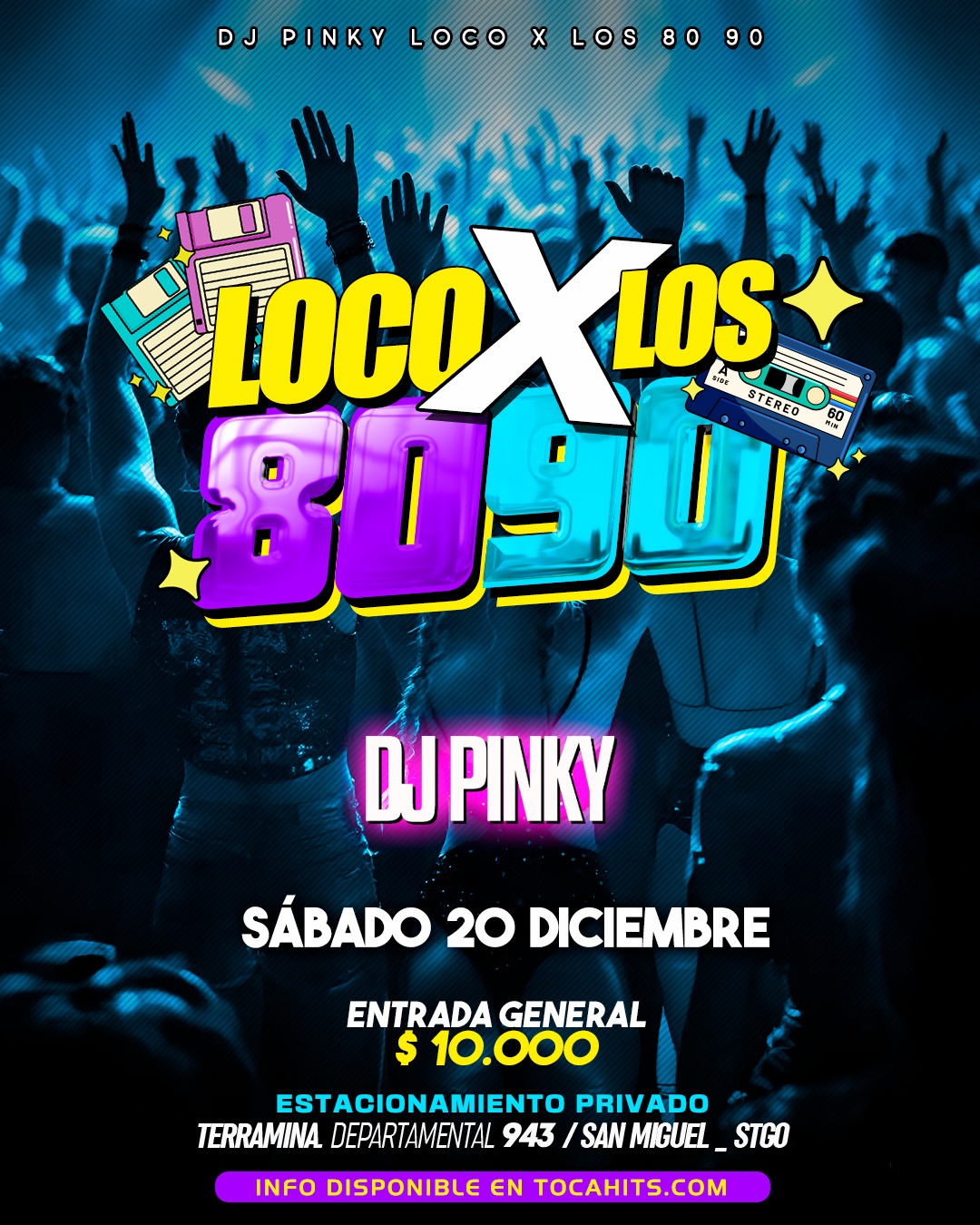 ¡Prearate para la fiesta Locos x los 80/90s!, el sábado 20 de diciembre, disfruta del evento “Locos x los 80/90s”, en el line up Dj Pinky